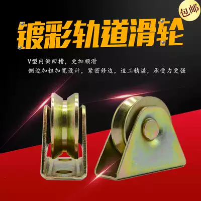V-shaped two-hole anti-rust thickened color steel rail wheel Wire rope angle iron groove wheel Gate rail wheel sliding door pulley