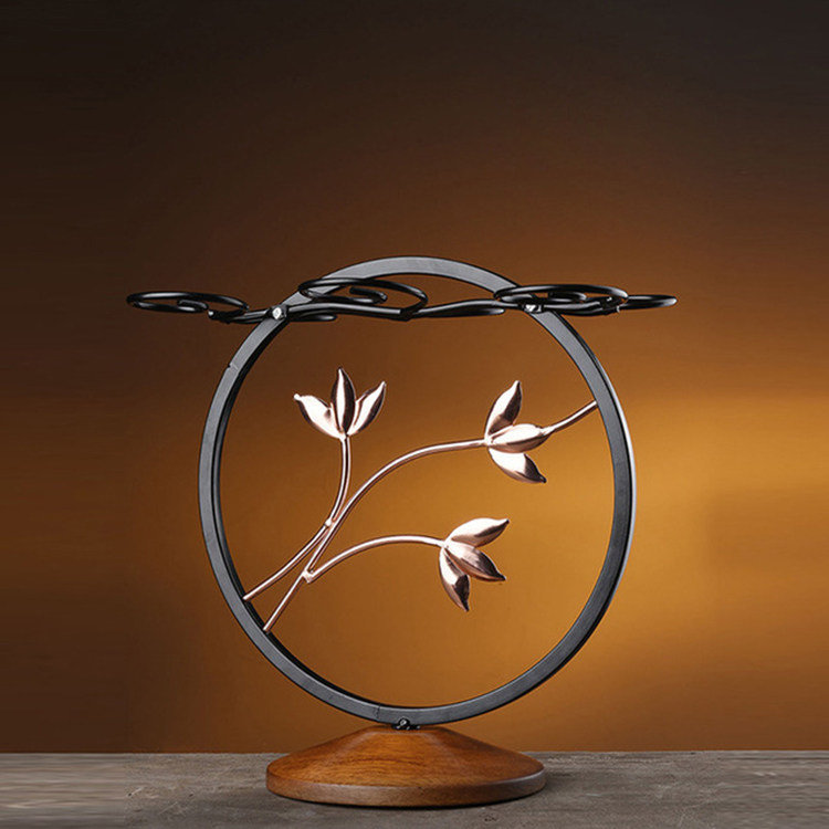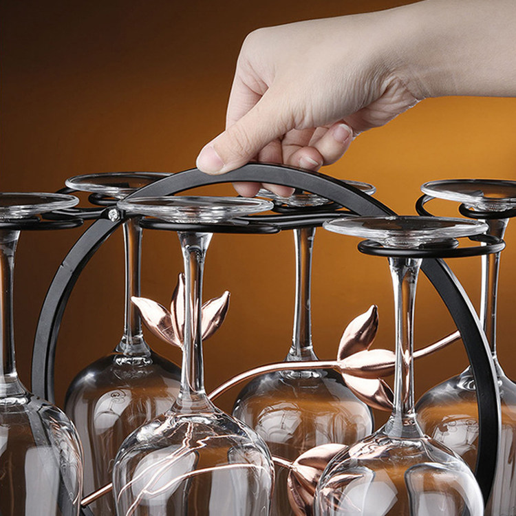 Wrought iron wine glass shelf decoration solid wood hanging upside down goblet cup holder bar home desktop drying cup holder
