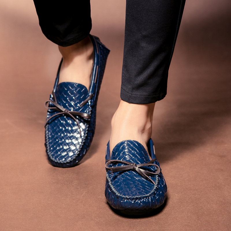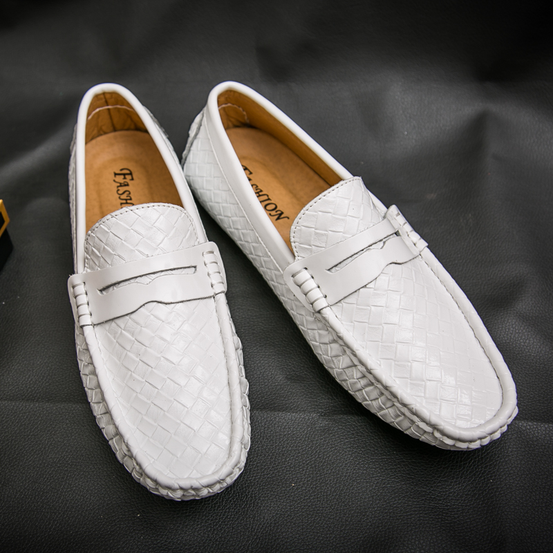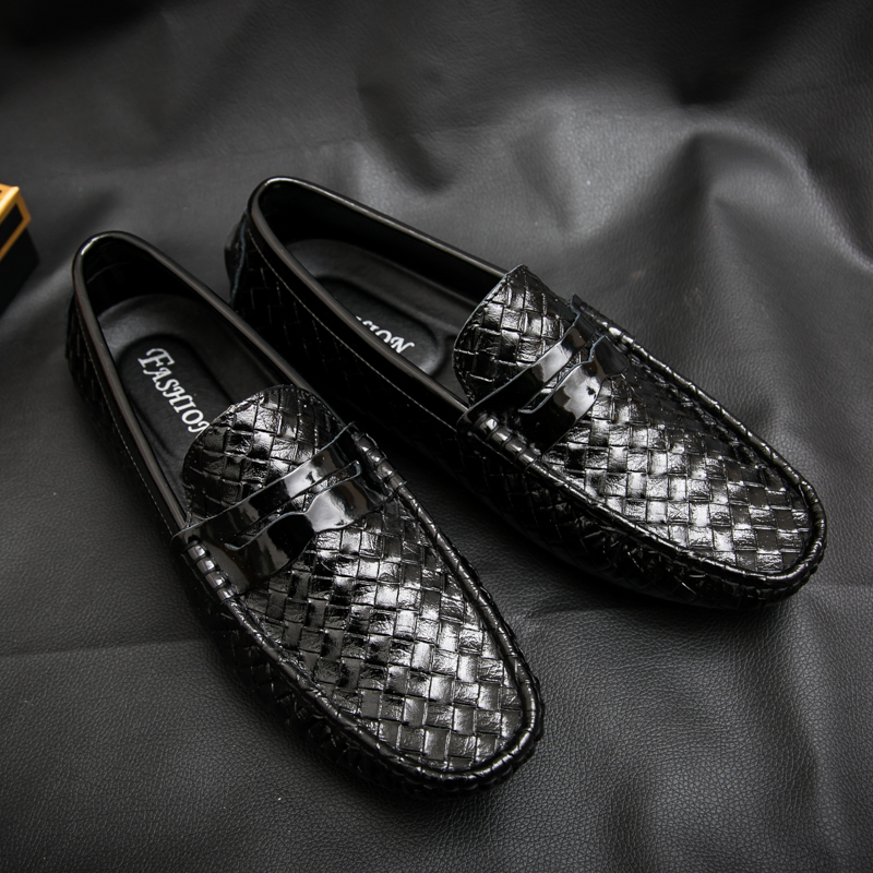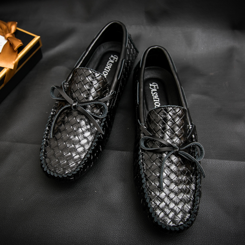 Hong Kong Tide Cards Soft Bottom Breathable Bean Shoes Men's Summer New Set Foot Fashion Weave Sloth Casual Leather Leather leather