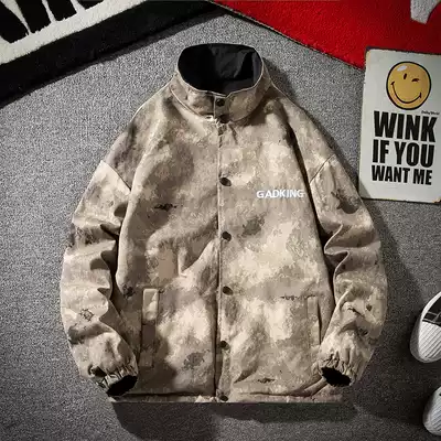 Two-sided plus cotton jacket men 2021 autumn and winter camouflage leaf printing Tide brand sports cotton clothes loose tooling jacket