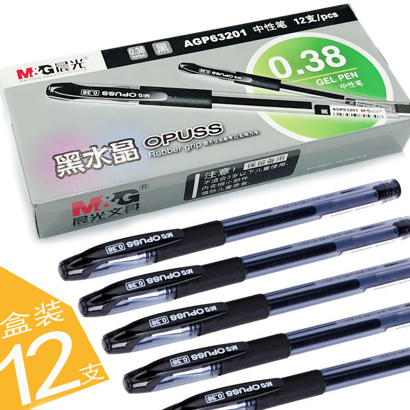 Chenguang stationery gel pen AGP63201 black crystal gel pen 0 38mm blue black red water-based pen signature pen red full needle tube office students with boxed smooth water-based pen fine word financial accounting