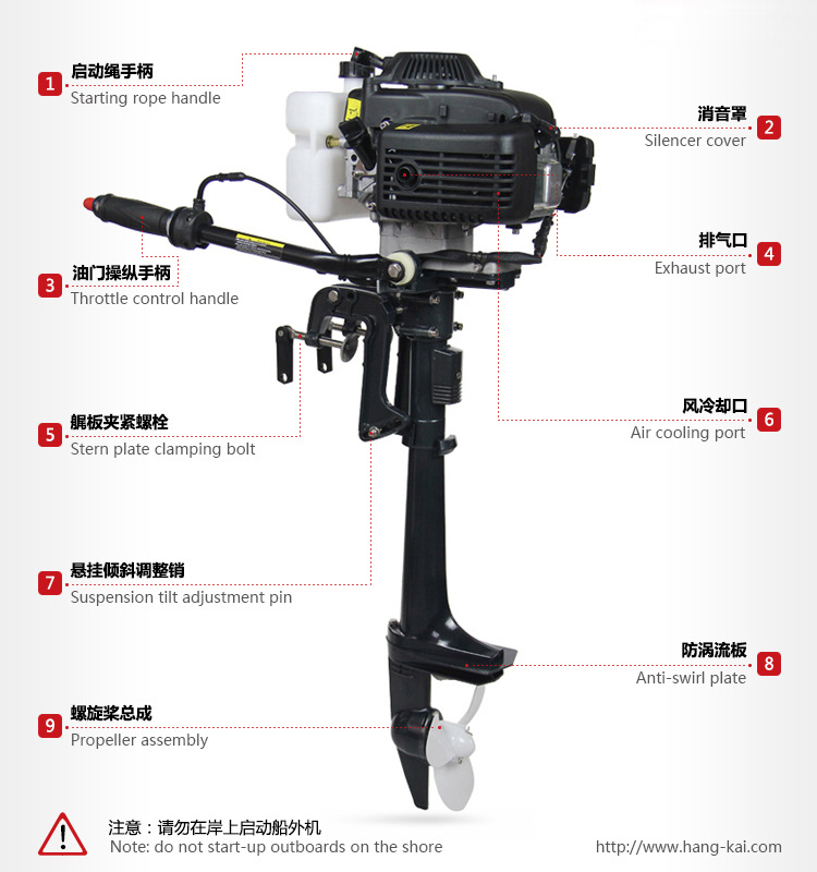 Outboard machine motor propeller Sanlaixi electric propeller boat rowing gasoline engine four-stroke two-stroke battery hanger
