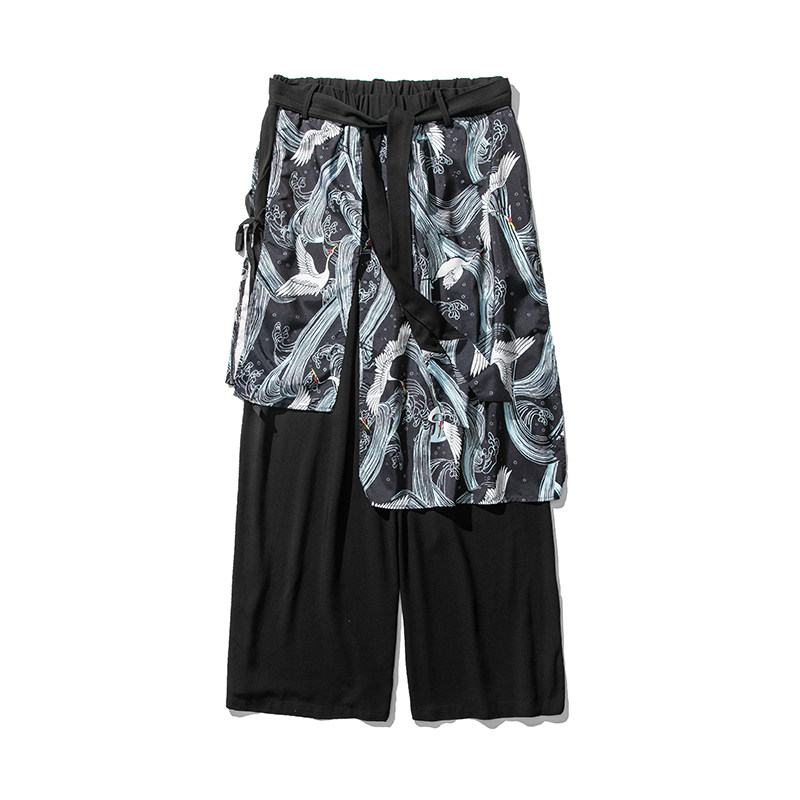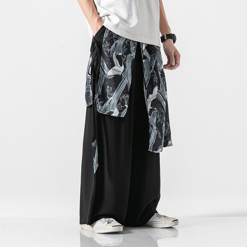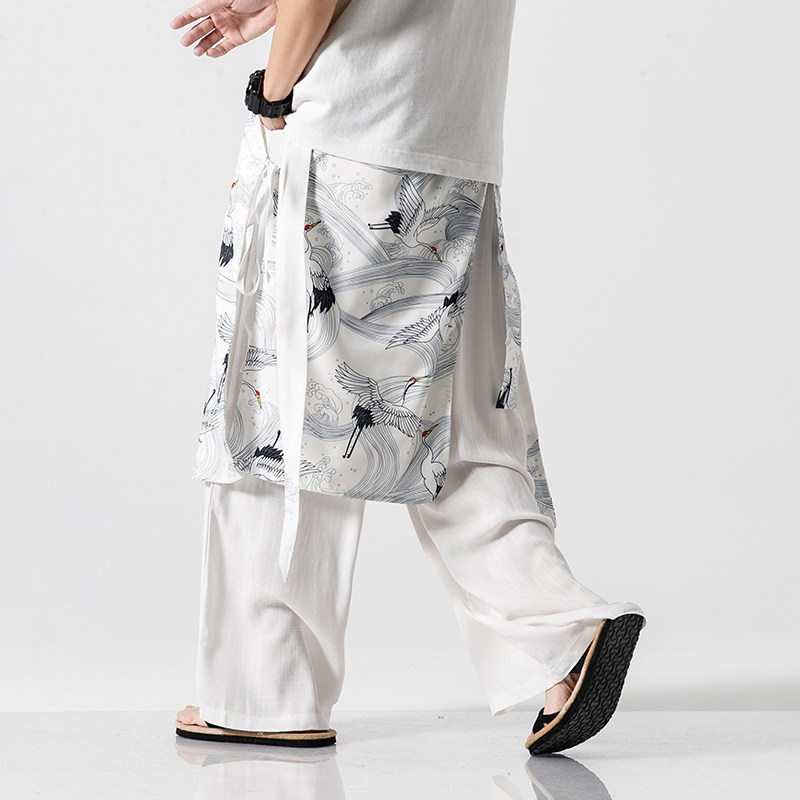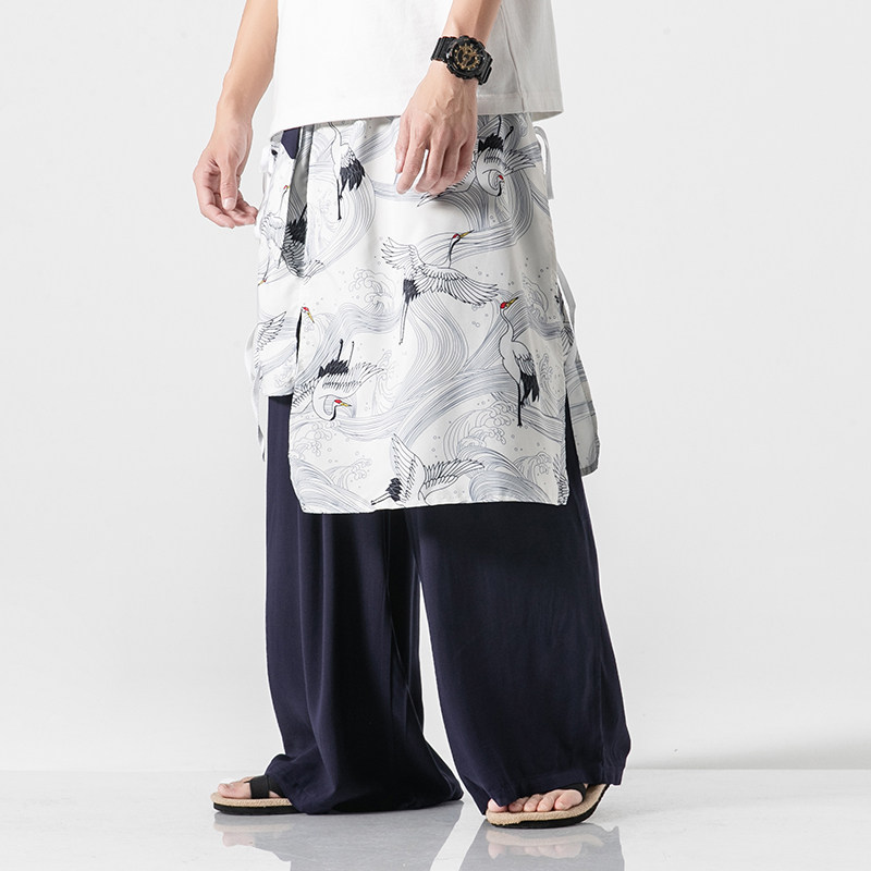 Day Department Large size Chinese Wind straight drum pants Male Young cotton Cotton Linen Wide Leg Casual Pants Retro National Wind Hanfu Dress Pants Tide