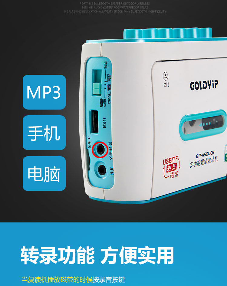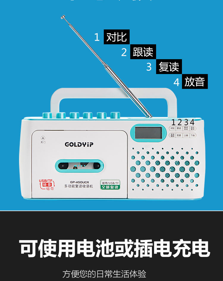 Gold industry repeater Tape machine recording radio cassette English learning USB transcription follow-up
