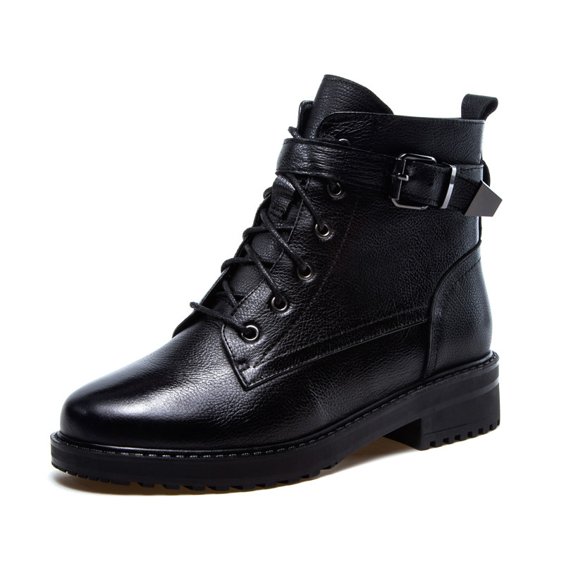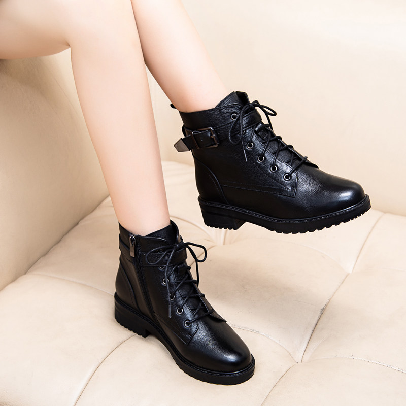 2022 autumn and winter new leather thick-soled motorcycle boots large size 41 lace up Martin boots women's flat mid-heel ankle boots 43