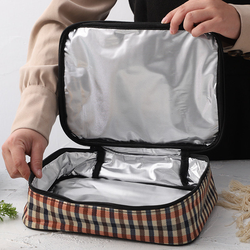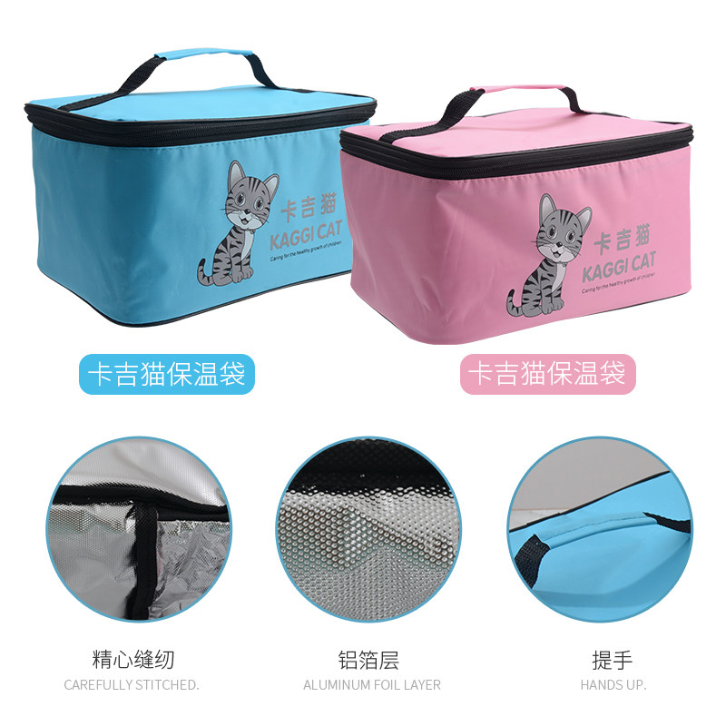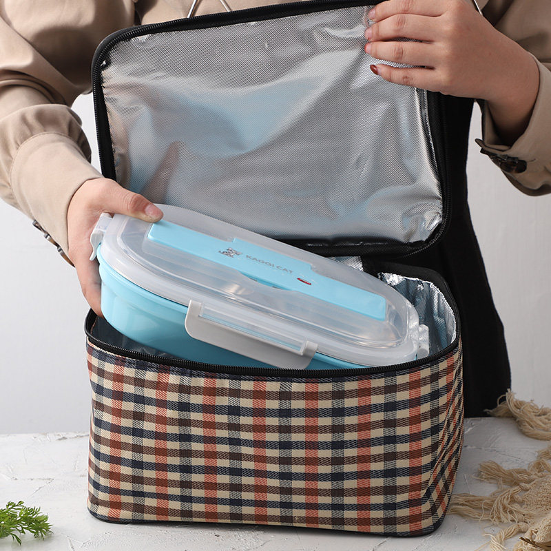 Short Lattice Insulated Bag (Long 28x Width 20x High 8 5cm) High Grid Insulated Bag (Long 28x Width 20x High 14 5cm) High Kaggi Cat Blue Insulated Bag (