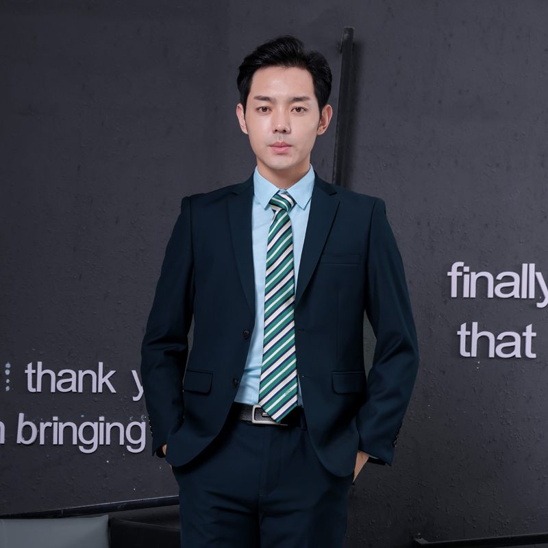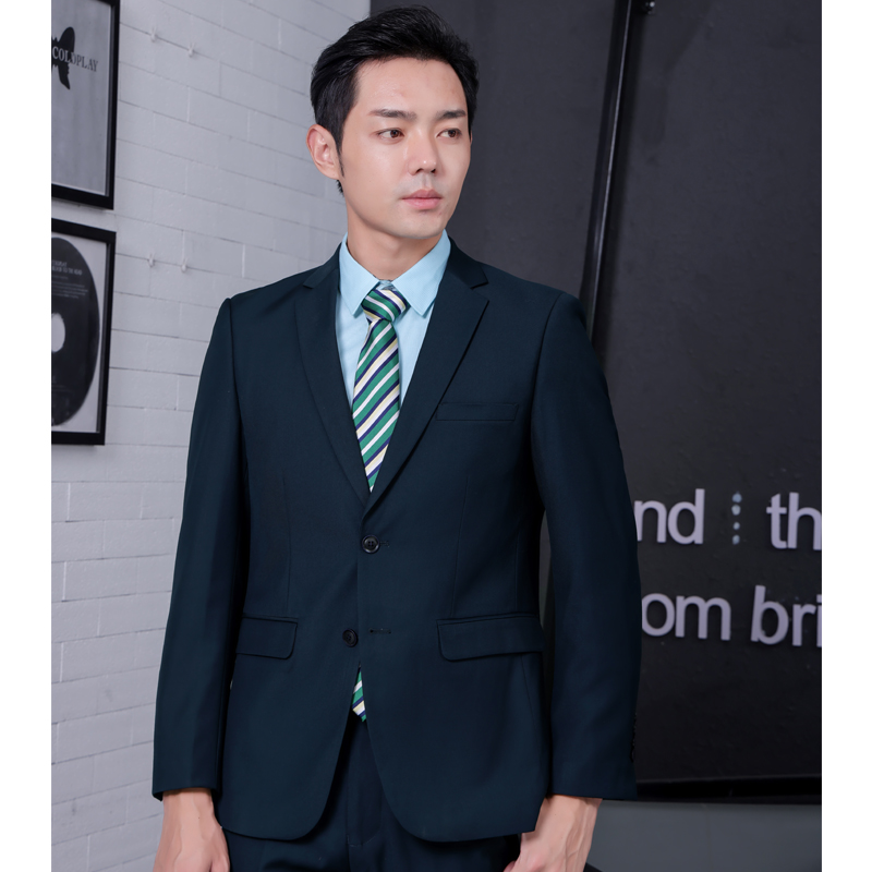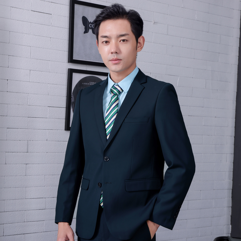 Postal blue and green men's suit jacket pants Postal Blue and green men's vest pants Long sleeve shirt Navy blue men's jacket pants