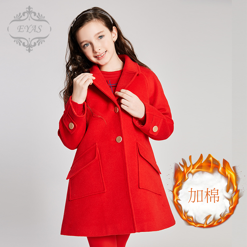 EYAS Girls Wool Wing Coat Broken Clearance Special Children Long Edition Coat Cotton