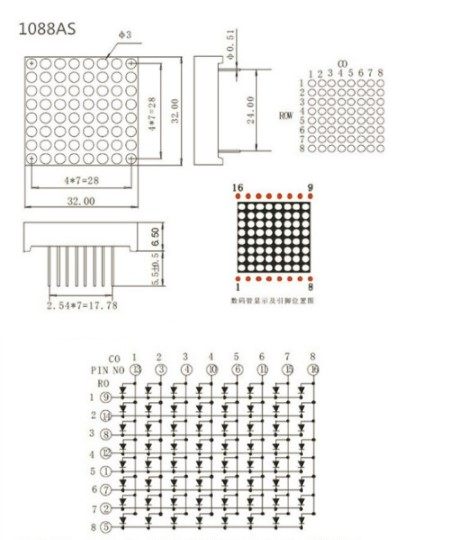 F3MM 8*8 HIGH-BRIGHTNESS RED LED LASER 1088AS CO-YIN 1088BS CO-YANG MAX7219 SPECIAL ARRAY