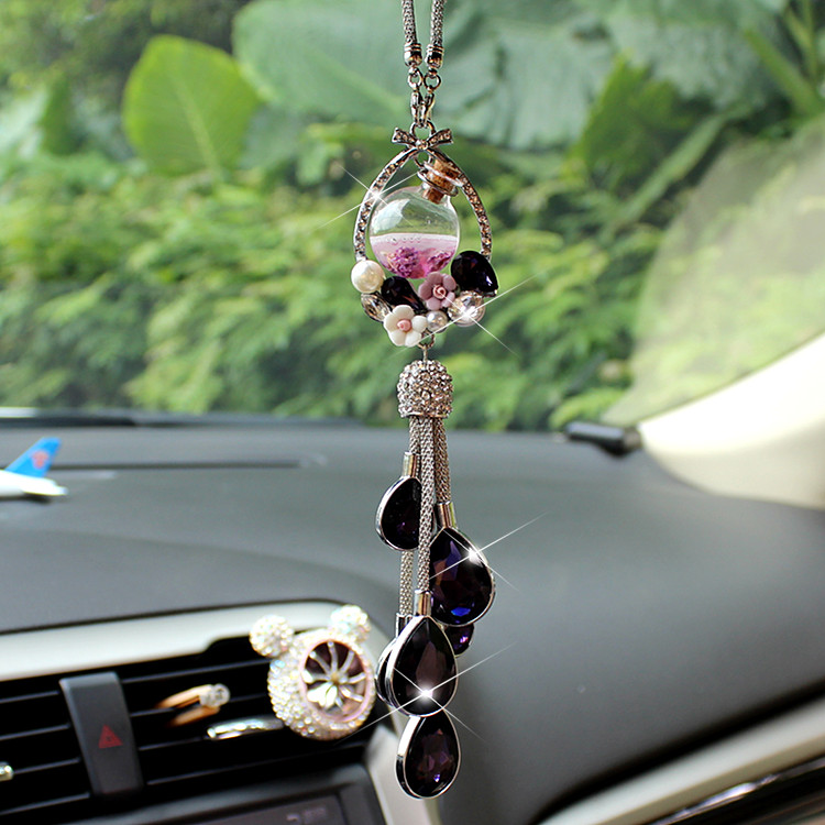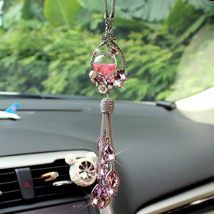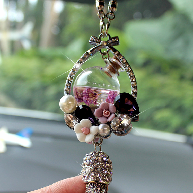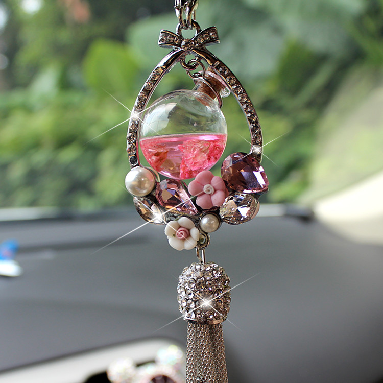 Car perfume pendant diamond-encrusted lady camellia crystal rearview mirror pendant car car pendant pendant