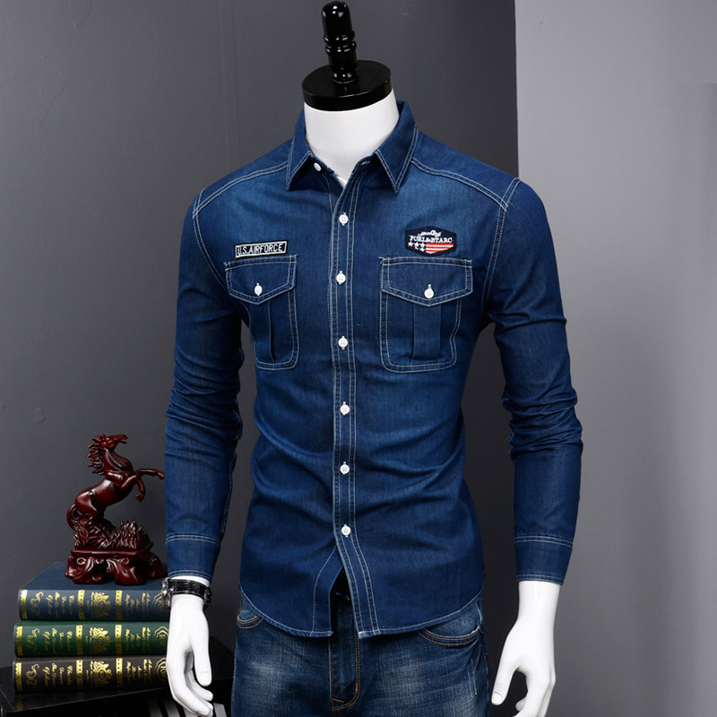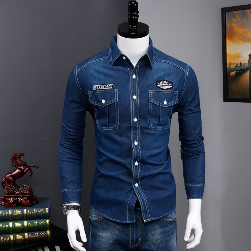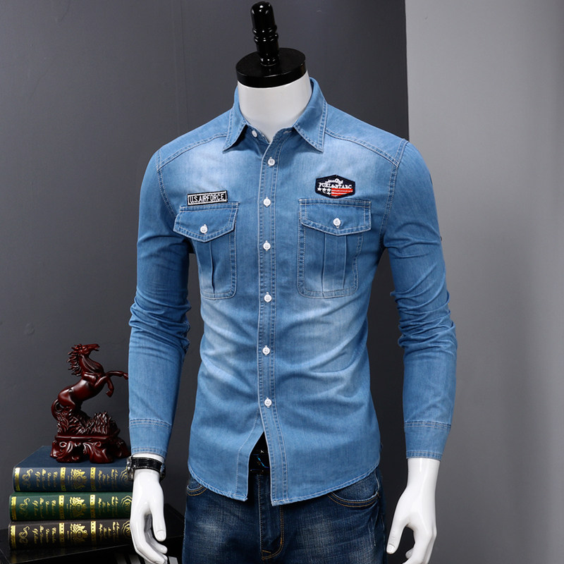 Long Sleeve Shirt Men's Dress Denim Jacket Han Edition Fashion Trends Washed Denim Shirts Men's Spring And Autumn Casual Blouses