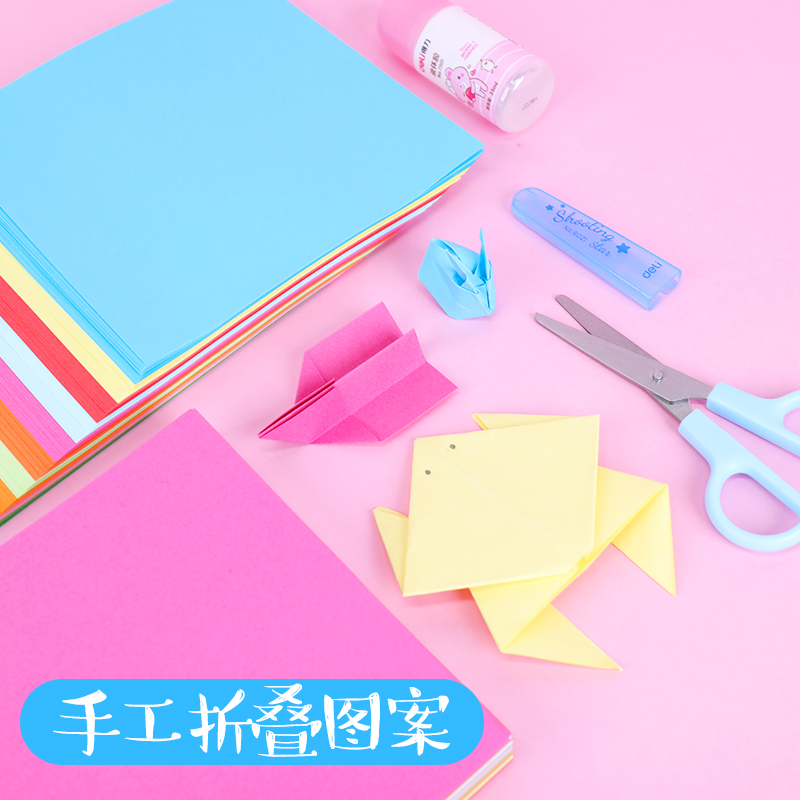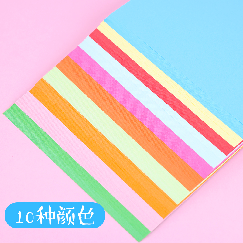 Right-hand Fold Paper Square Handmade Kindergarten made Material Folded Paper Color Fine Art Students use 3-6-year-old Multi-functional large number Color photocopy paper 10 Color Rectangular Mix 100 sheets of paper cut
