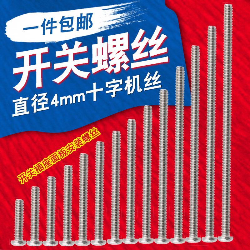 304 stainless steel electrician switch socket panel 86 type round head countersunk head cross m4 screw lengthened 4-7CM cm