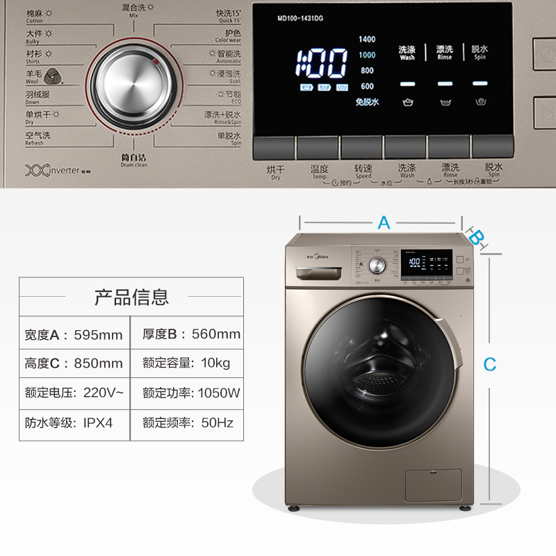 Midea 10 kg KG washing machine automatic household drum washing and drying AllMD100-1431DG