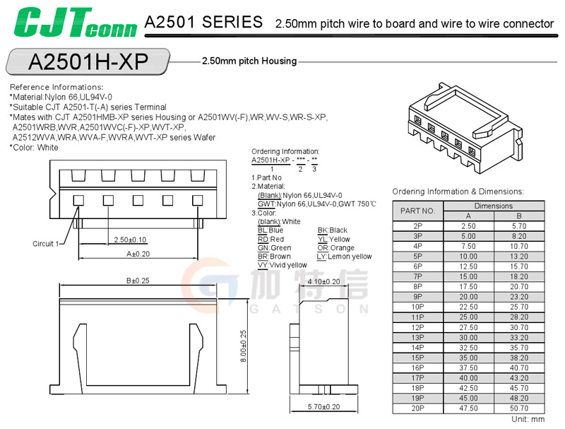 A2501H-5P CJT Yangtze River Connector Original Pressure Terminal Terminal Case Pitch 2 5MM