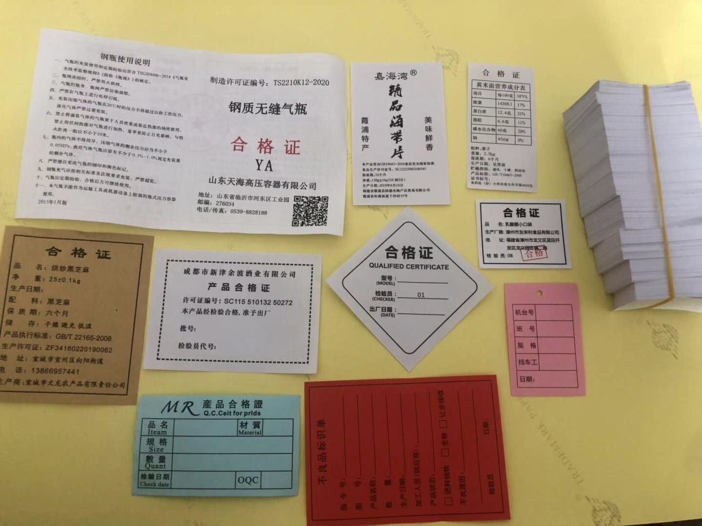 General Paper Food Certificate General Photocopy Paper Double Kraft Paper Grain Label Product Factory Certificate