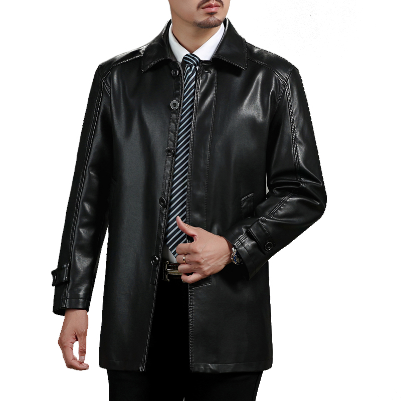 2021 new Hainen genuine leather leather clothing male middle aged leather jacket with long version of capsized leather jacket male and velvet jacket