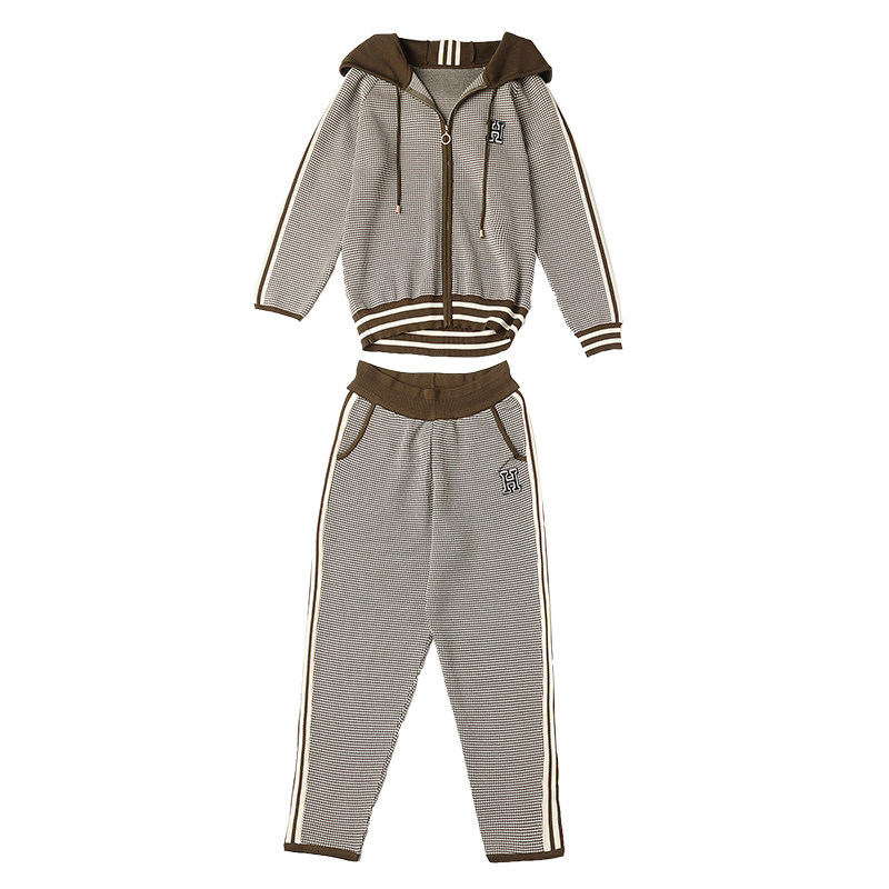 European Station Zipper Cardiovert Casual Sports Suit Women Spring Autumn Clothing Moms Loose Foreign Air Age Knit Two Sets-Taobao
