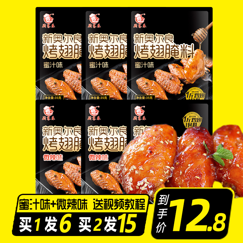 Orleans Grill Wings Marinate 35g * 6 Bag Honey Roast Slightly Spicy Grilled Chicken Wings Marinated Meat Barbecue Fried Chicken children Home