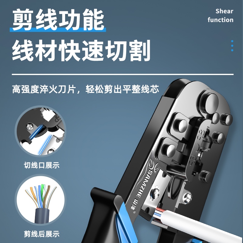 Yamazawa multi-function network cable clamp network crystal head crimper telephone line handset wire mesh cable dual with three-purpose compression peeling shear pliers 8P8C wiring tool labor-saving engineering grade