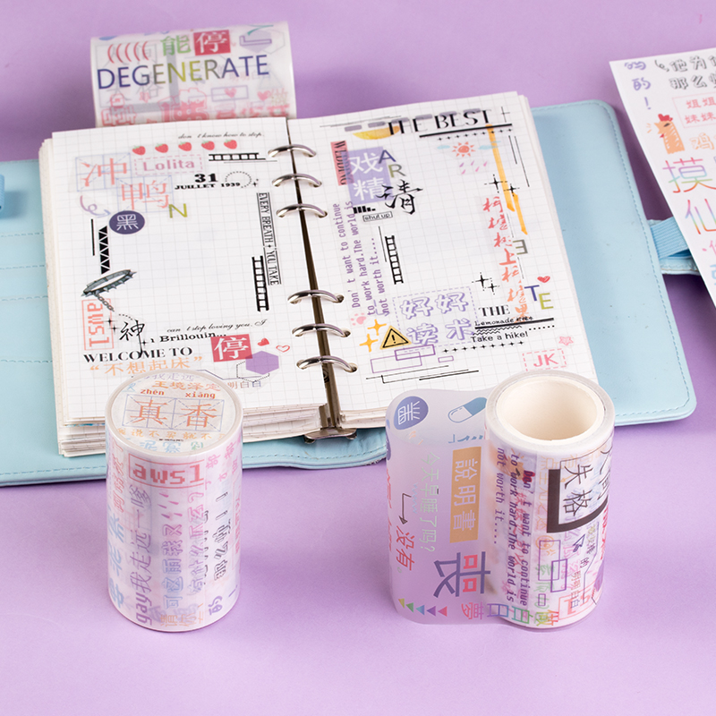 Ultra Long Cycle PET and Paper Text Hand Ledger Duct Tape Nets Red Real Fragrant Poison Chicken Soup Humor Handbill Material Stickers