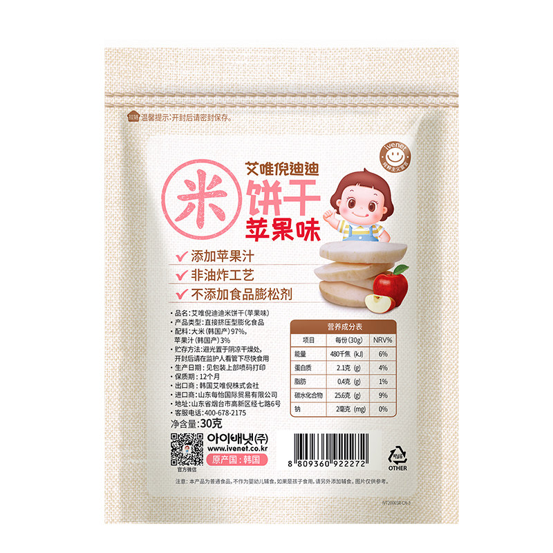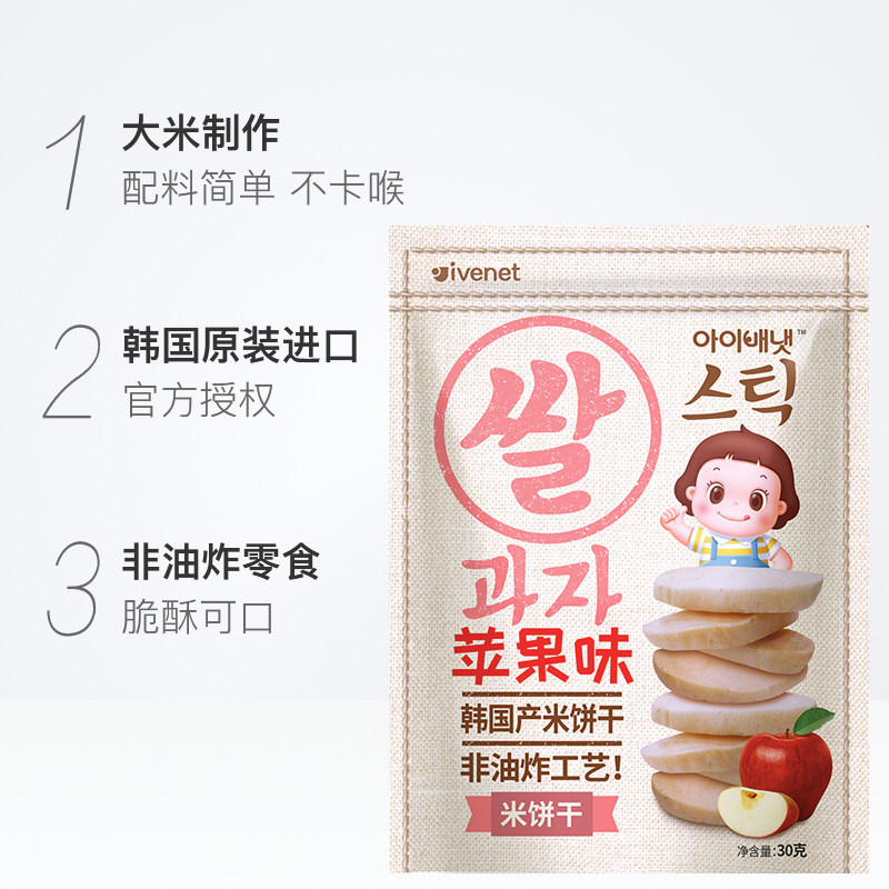 Korea Imports Ai Wei Ni Children Snacks Apple Flavor Rice Cake 30g Grinding Tooth Stick Cookie-Taobao