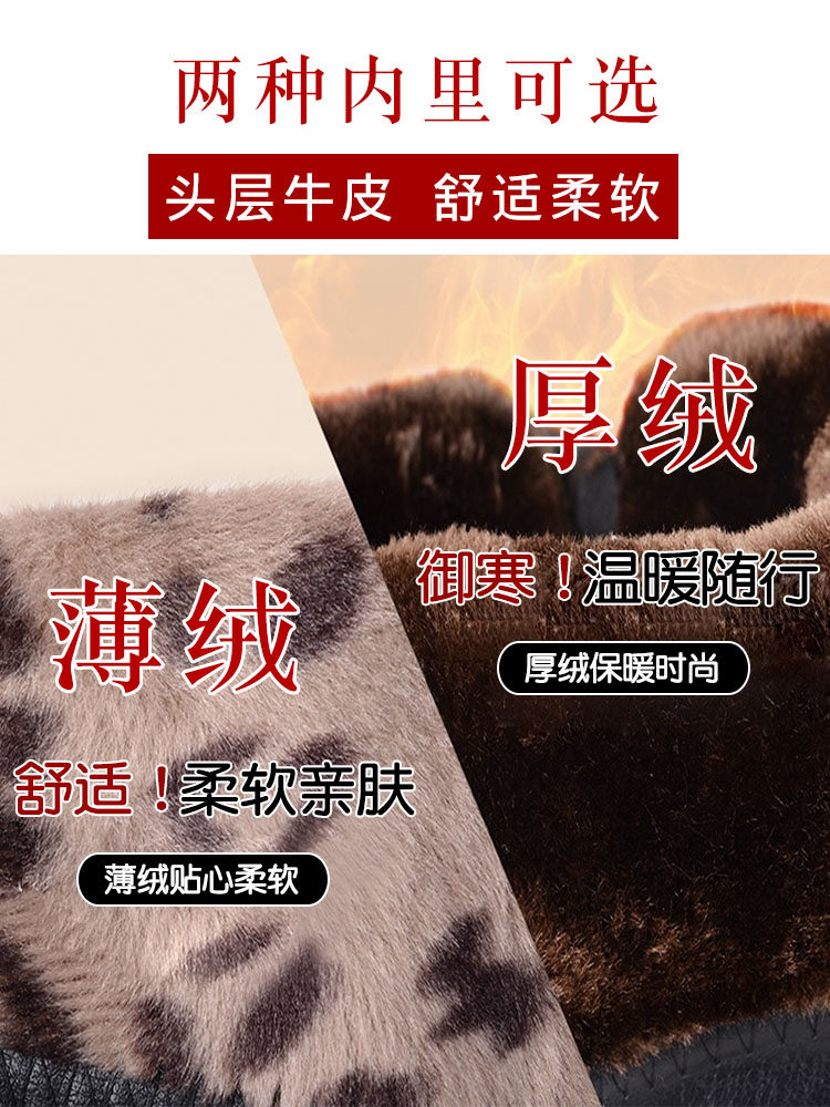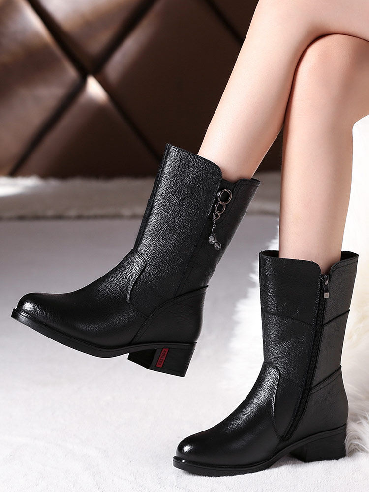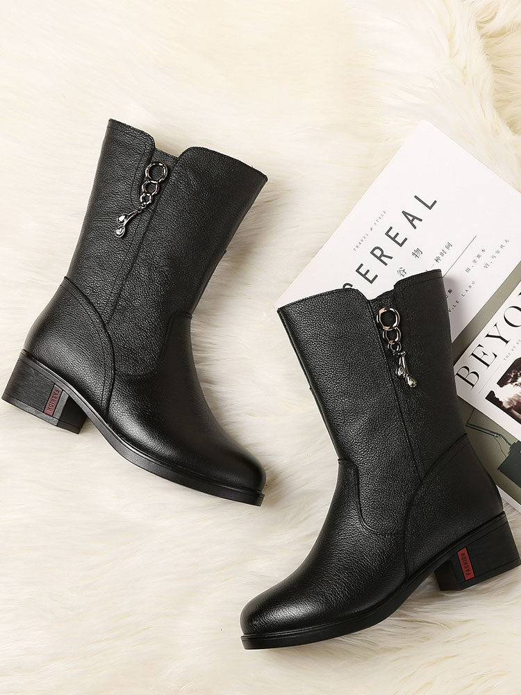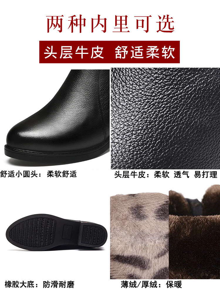 Boots women's 2022 new leather mid-tube boots mid-heel leather boots mother cotton shoes plus velvet thickened middle-aged women's boots winter