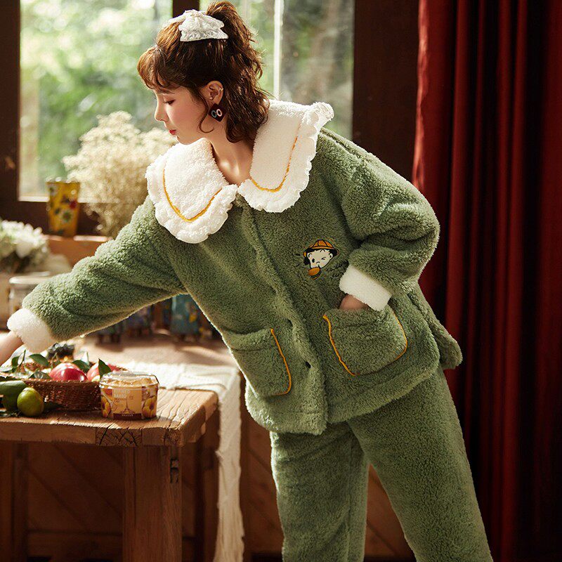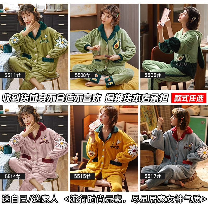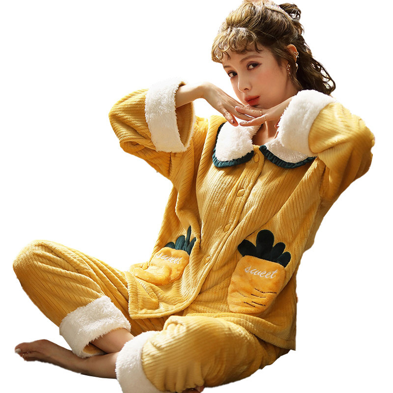 Pajamas women 2021 new autumn and winter coral fleece padded plus velvet cute winter ladies flange home clothing