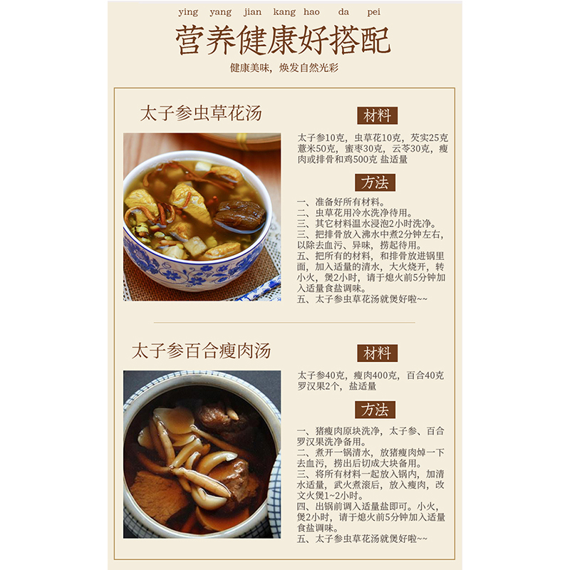 Six treasurers Prince ginseng selection of farmhouse children's ginseng without lavender sulfur hand-selected prince ginseng pot soup 500g