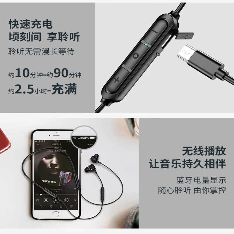 DDJ S4 double moving coil bass bluetooth headset wireless bluetooth neck-mounted binaural in-ear sports running male and female students long standby battery life suitable for apple sony sony universal