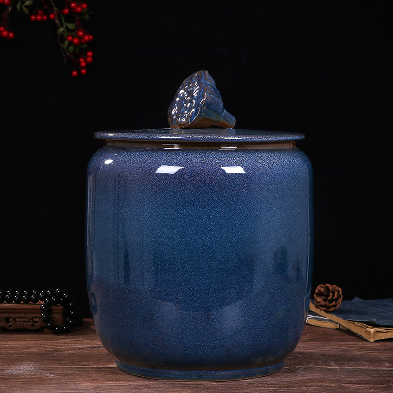 Jingdezhen ceramic rice tank rice bucket rice storage box 10kg20 catties with cover sealed bucket household moisture-proof insect-proof rice tank