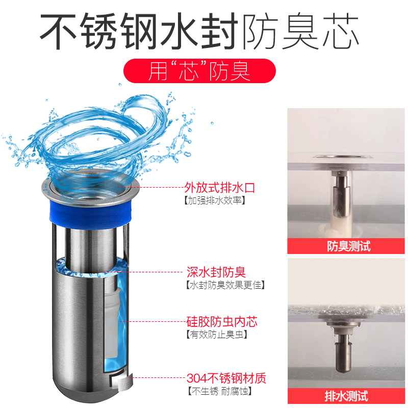 Diving Boat Deep Water Seal Floor Drain Makeup Room Washing Machine Official 304 Stainless Steel U Type Deodorizer Flagship Store