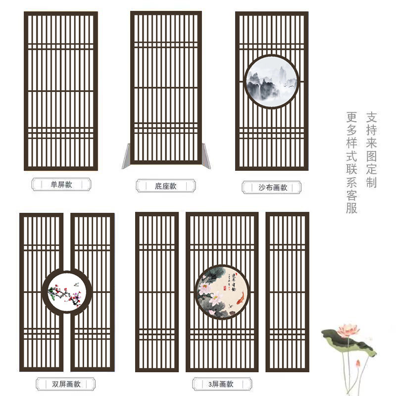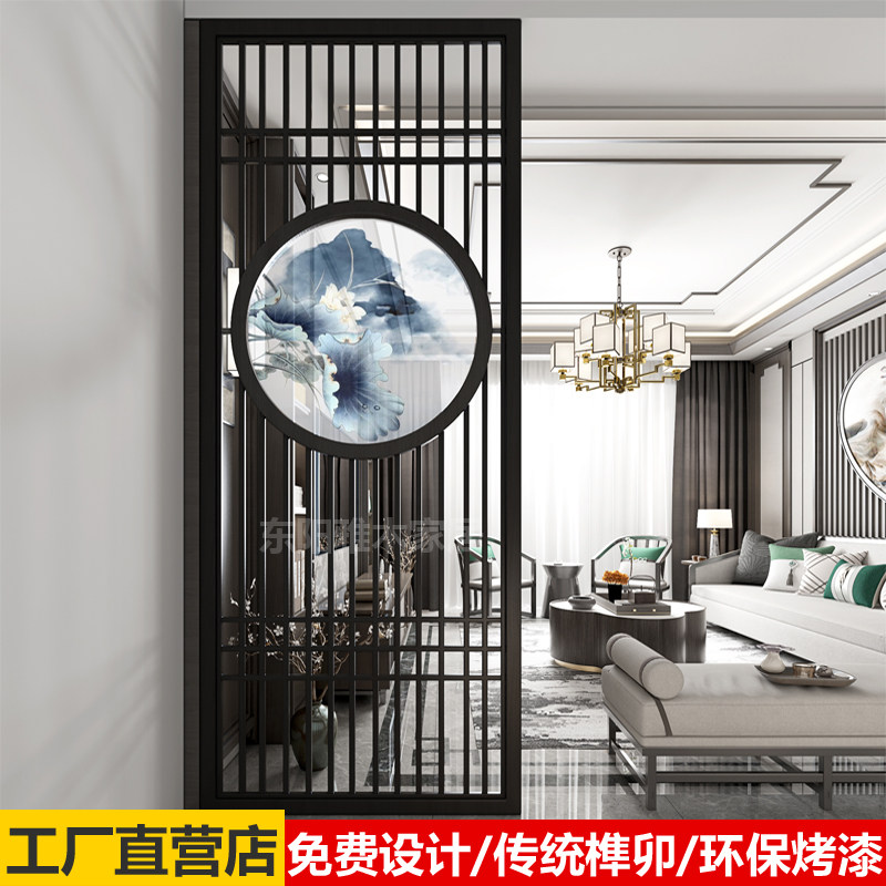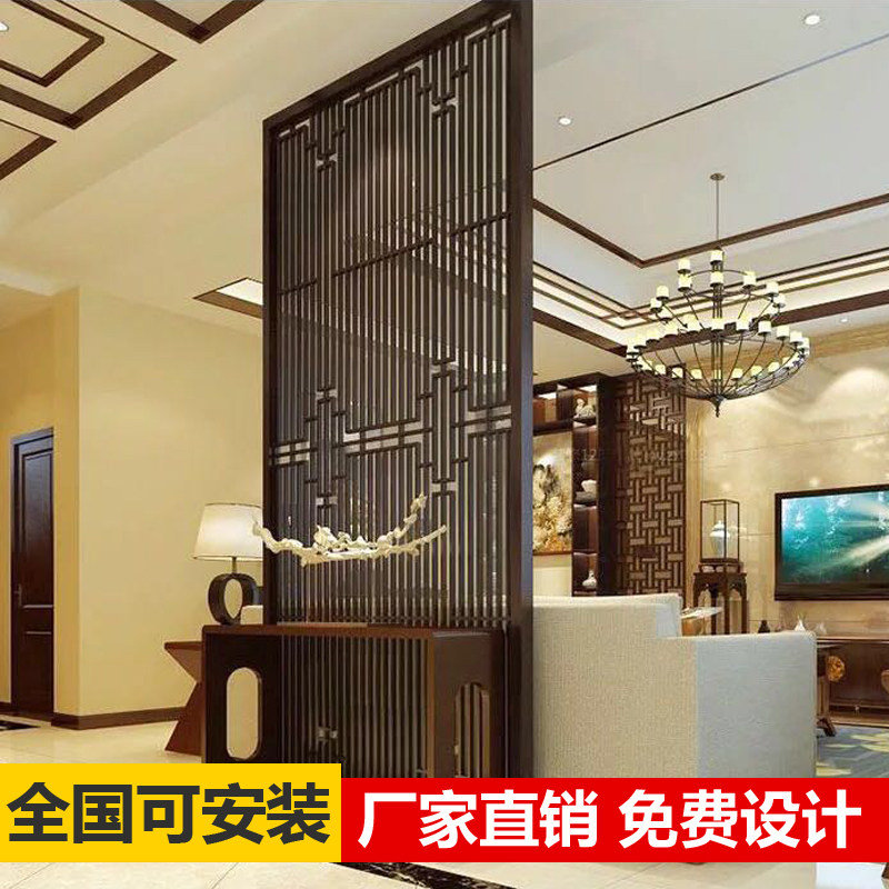 Customized new Chinese style entrance entrance living room partition solid wood grille screen background wall modern minimalist lattice hollow