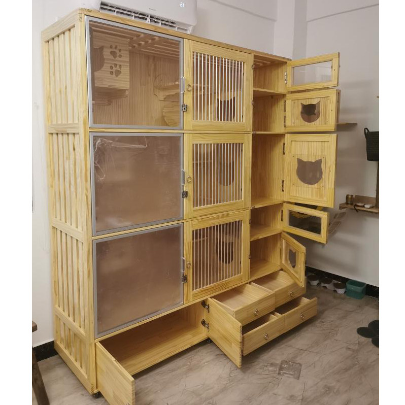 Cat Villa Real Wood Luxury Cat Cage Cat Cabinet Cat House Cat Apartment Custom Glass Display Cabinet Luxury Double Layer