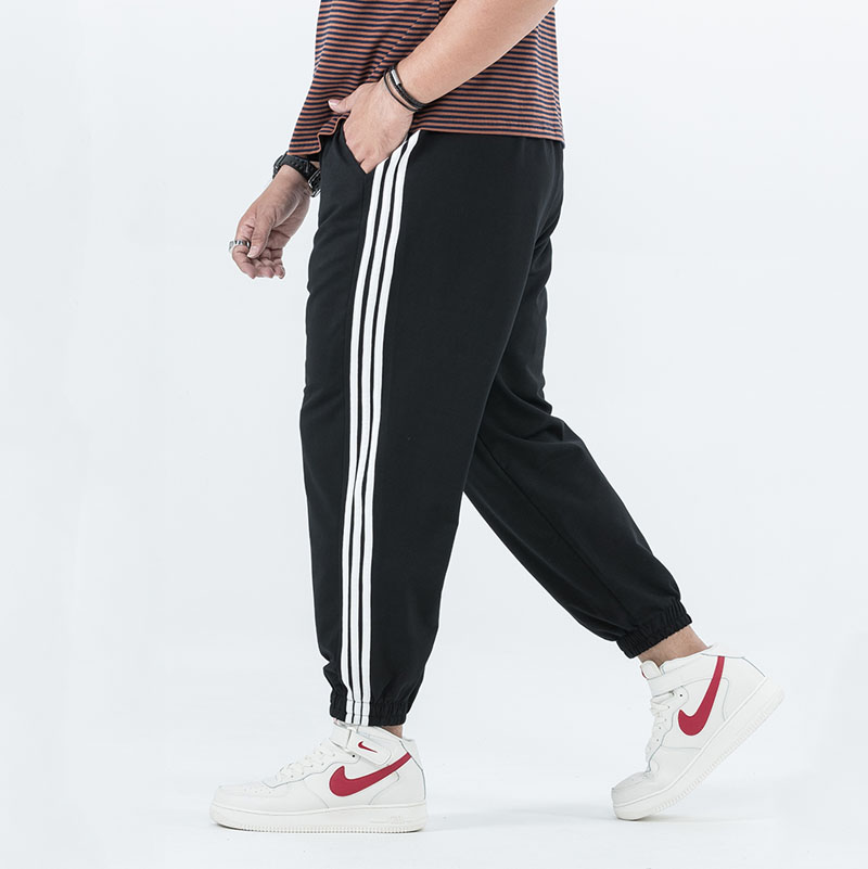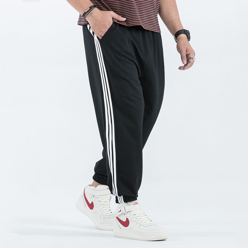 2021 new spring fat classic striped sports casual pants plus fat plus size youth fat casual narrow leggings