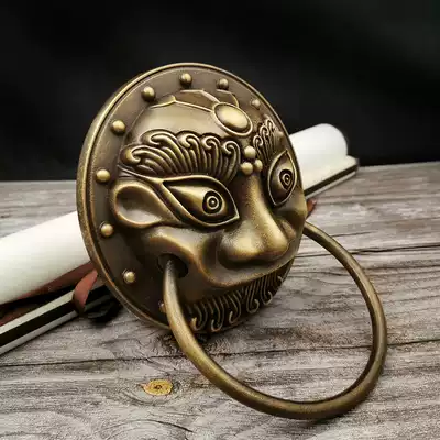 Pure copper animal head door ring animal head tiger head pull ring ring old door lion head handle retro antique door pull handle