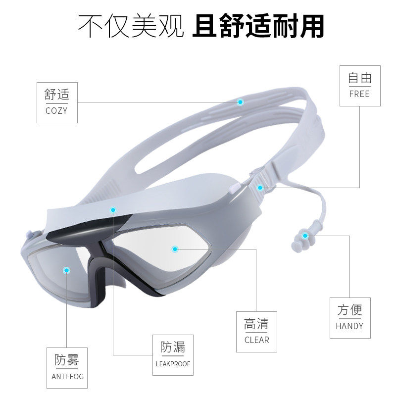 Swimming goggles waterproof and anti-fog HD large frame flat unisex swimming goggles adult children's set equipment diving goggles