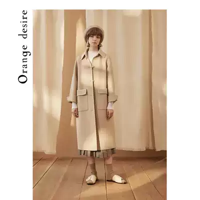 Orange double-sided wool woolen coat female 2021 spring new knee long version thick coat