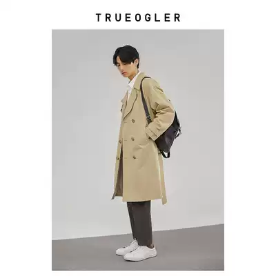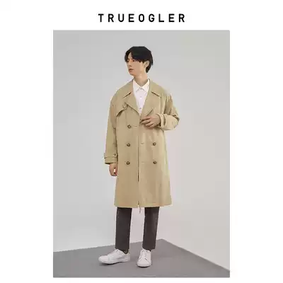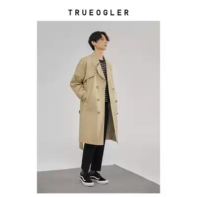(Chu grid) profile trench trench coat men's long version of British style coat men's spring and autumn loose handsome coat