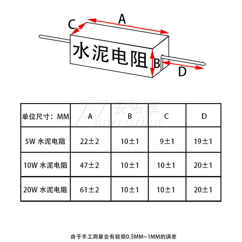20W ceramic cement resistance 1R 2 3 5 8 10 15 15 20 20 30 30 47 Ohm