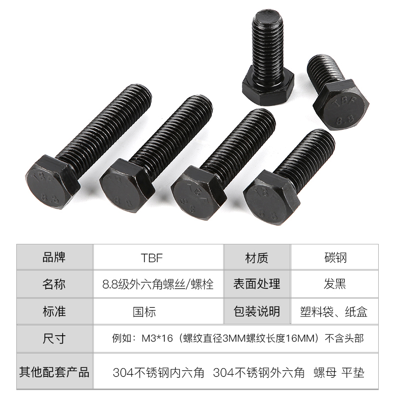 Tianbao 8.8 grade national standard high strength M6M8 hexagonal screw black carbon steel bolt full tooth extension screw