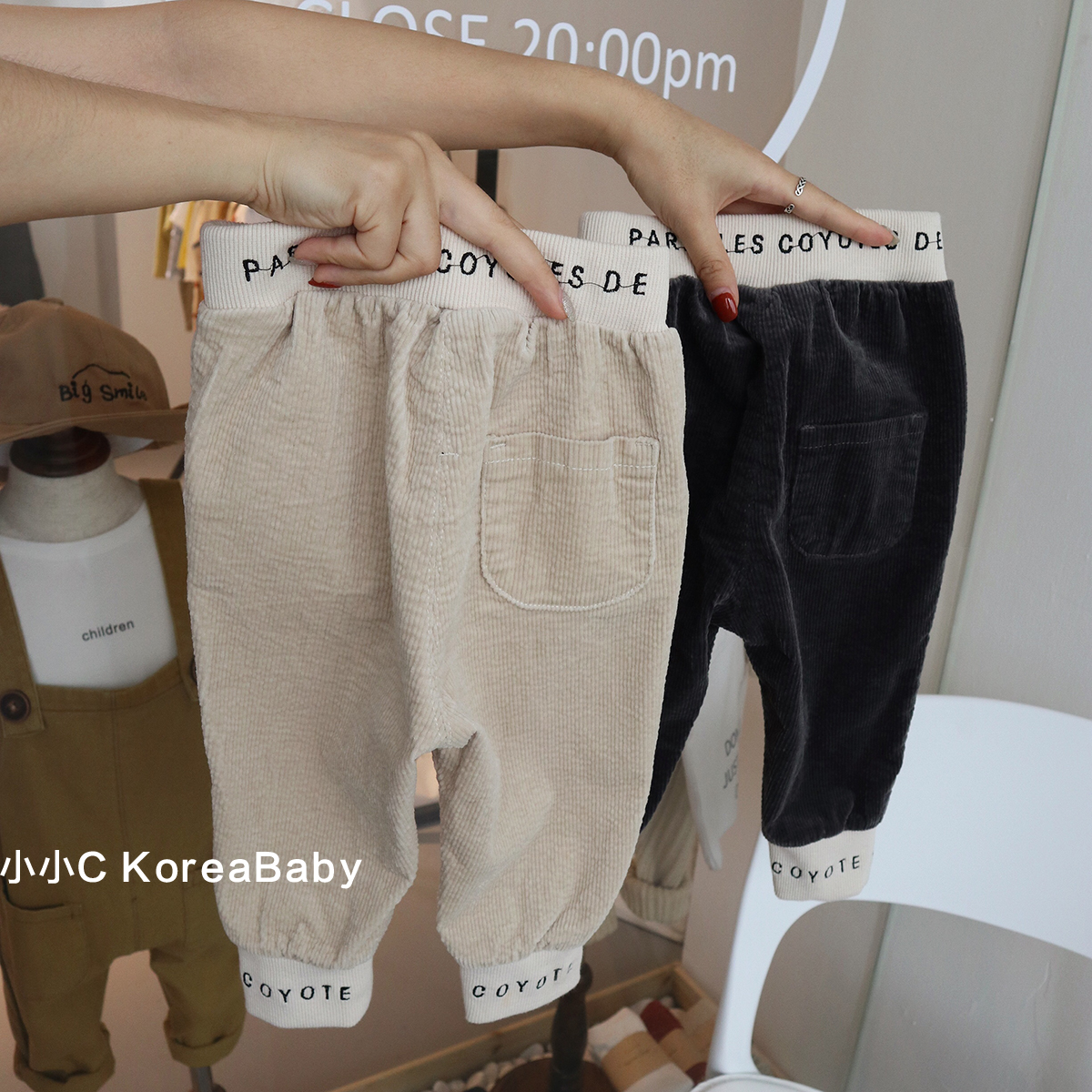 Korean baby baby corduroy pants 2021 autumn new men's and women's baby pure cotton plus velvet turnip pants