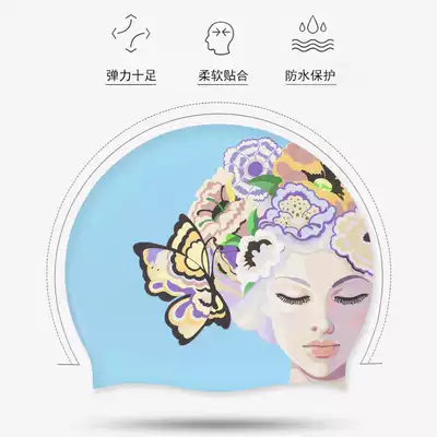 PRIDONNA new waterproof ear protection silicone swimming cap female professional long hair does not take head ins printing swimming cap