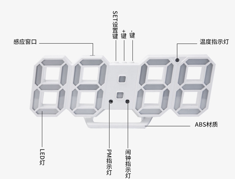 INS Korean style student desktop decoration electronic clock LED digital wall clock 3D stereo alarm clock Bedroom wall clock