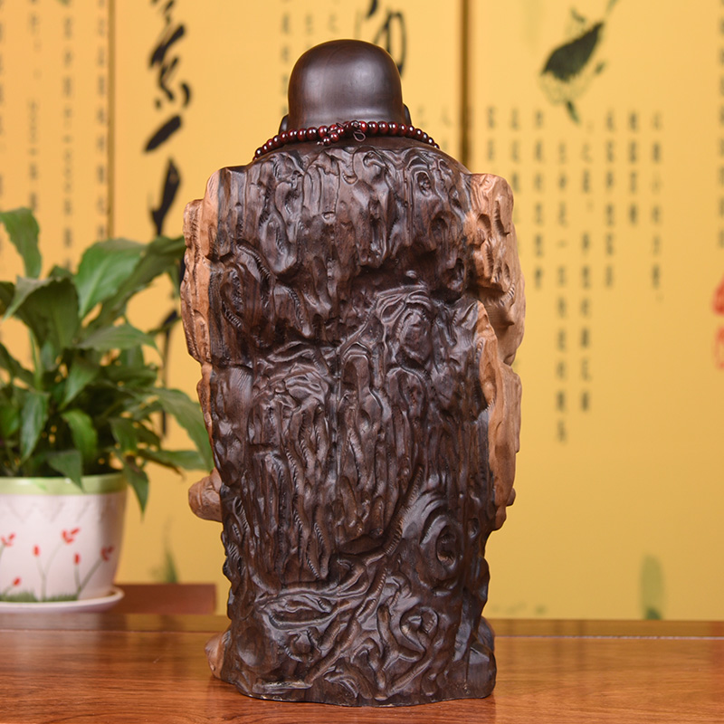 Black Sandalwood Solid Wood Engraving Miele Fo Root Sculpture Pendulum Large Smiles Buddha Craft Gift Pendulum Decoration Red Wood Home Xuanguan Decoration Gift Giving Gift