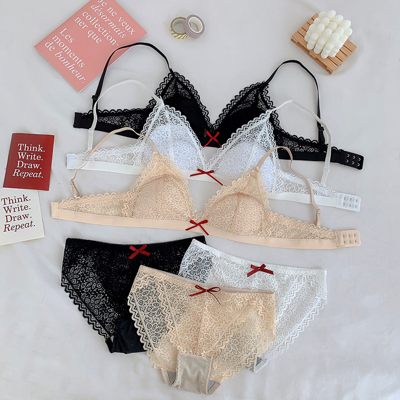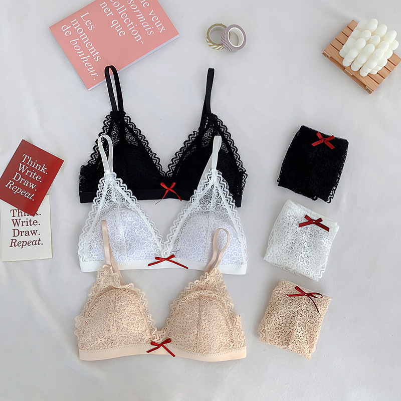 bralette method lingerie underpants set of women thin steel ring big chest for small and breathable triangular cup bra