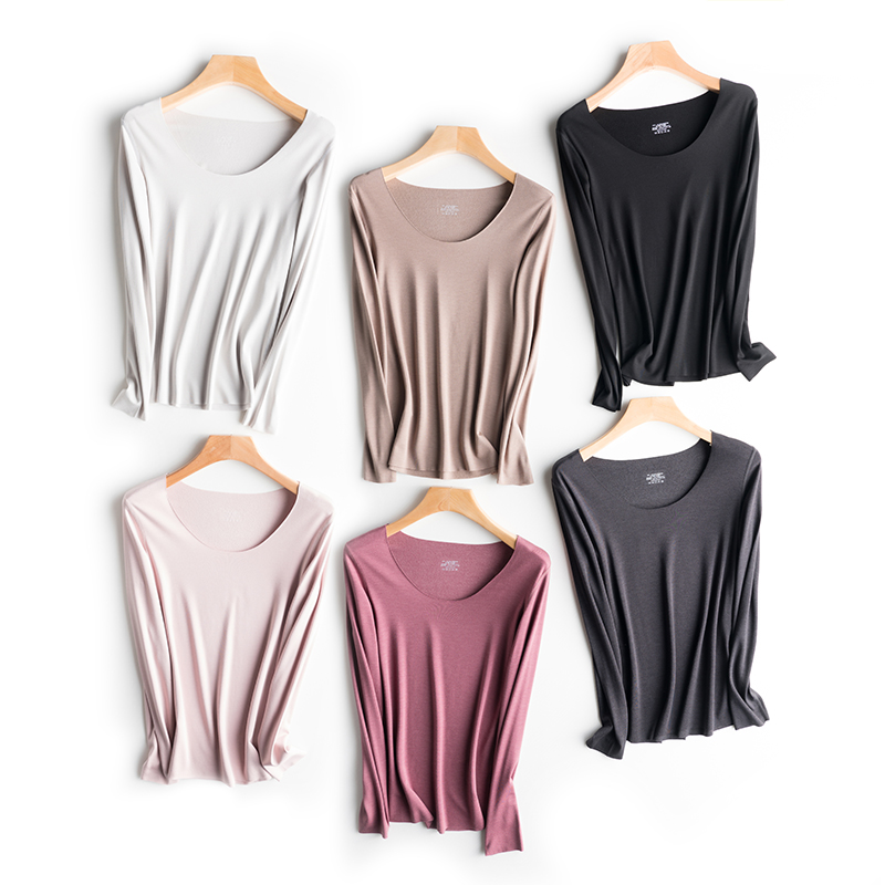 German velvet seamless heating clothes women's autumn clothes one-piece tops big low neck autumn and winter thin long-sleeved inner wear outer wear