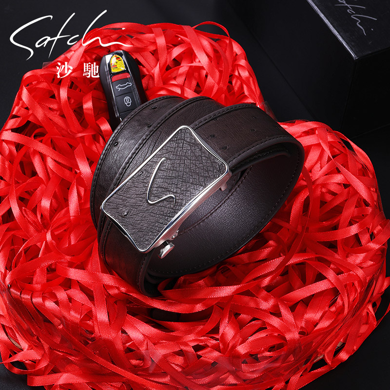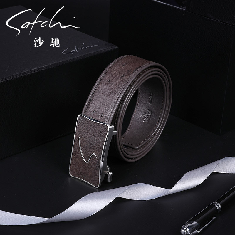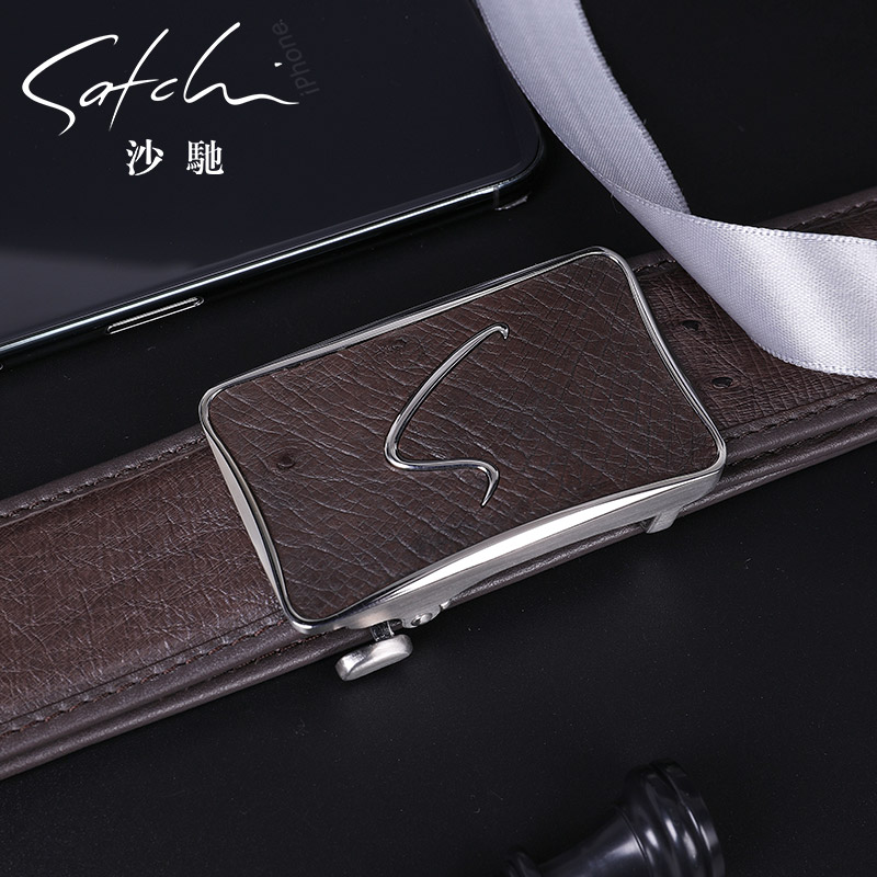 Sachchi Belt Male Ostrich Leather Leather Pants With Stainless Steel Automatic Buckle Belt Business 100 Hitch Fashion Belt New