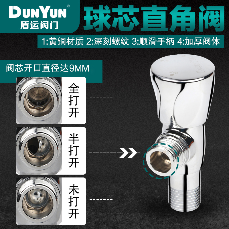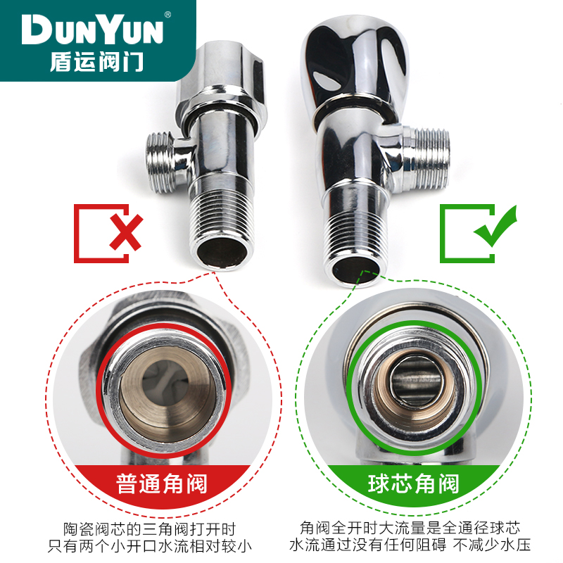 Shield transport full copper ball core triangular valve thickened 4 points 6 points large water flow copper core copper shank water heater wall hanging furnace angle valve