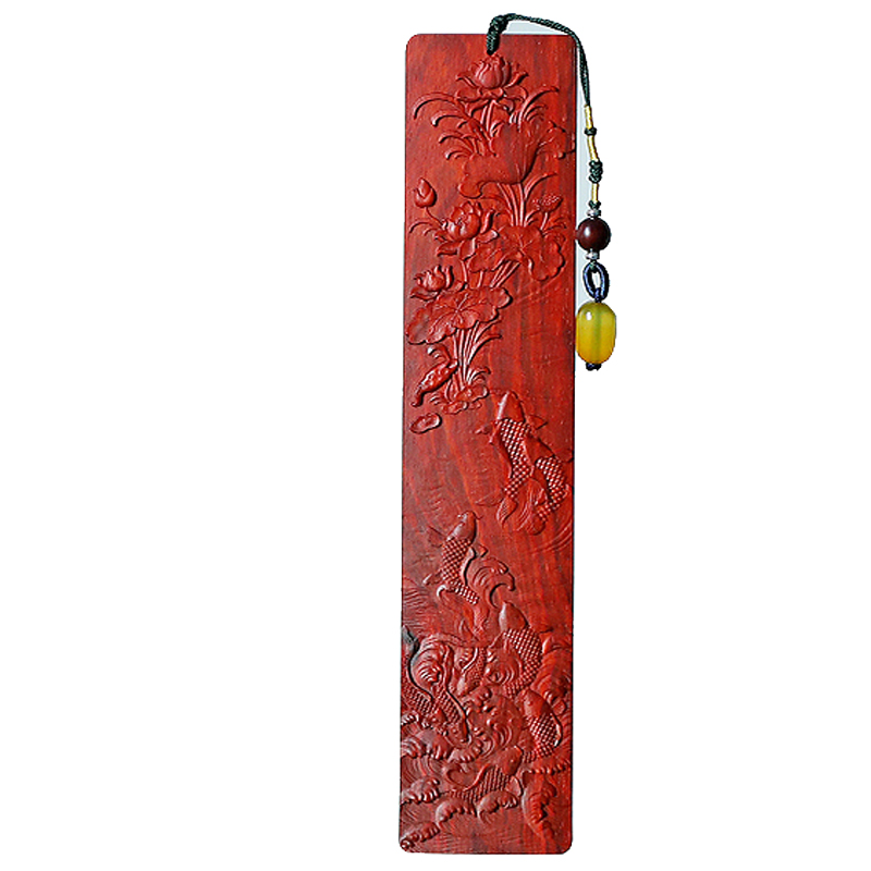 Indian lobular red sandalwood bookmark Chinese style mahogany old material custom woodcarver gift solid wood bookmark lettering